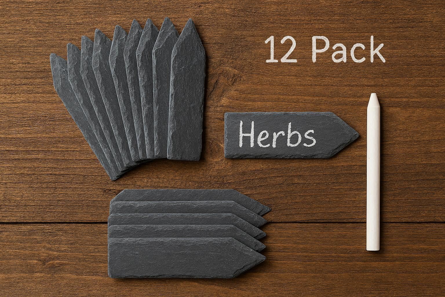 Elevate your garden’s style with these 12 natural slate plant labels, which combine practical functionality with charming rustic decor. Each label is cut from real slate stone, measuring approximately 4 by 2 inches, and features a unique, irregular shape and subtle color variations that add organic beauty to your planters and beds. They come with a dedicated chalk pencil that writes clearly on the textured slate surface.